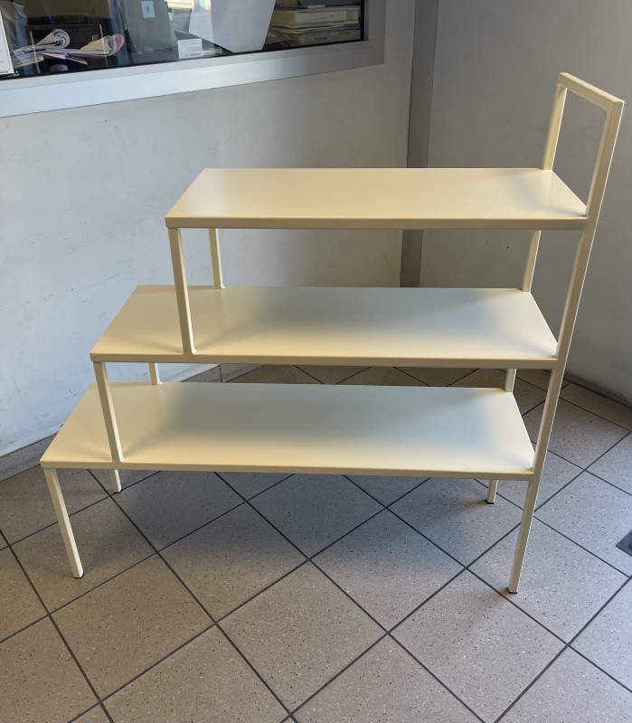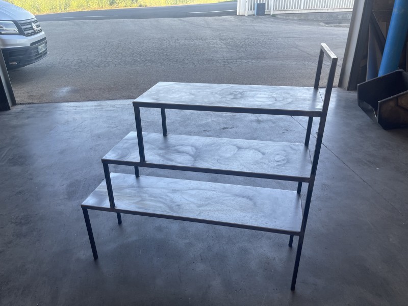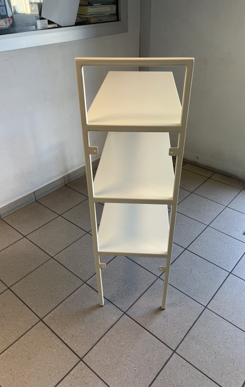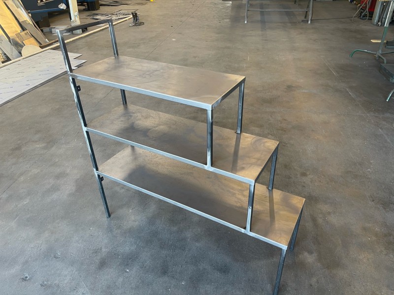 Nous avons procédé à la réalisation des étagères en tôles acier par découpe et pliage. La structure a été faite en tube acier, coupé et assemblé par soudure.